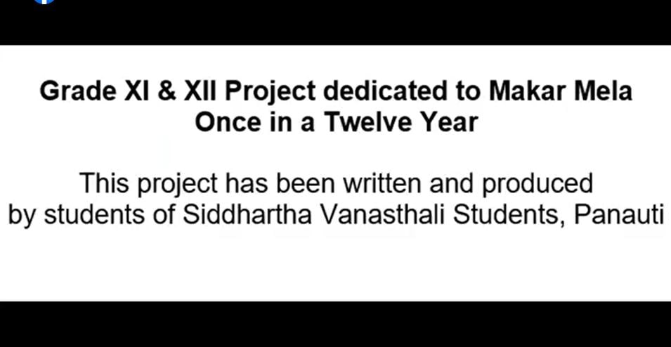 An introductory video for Makar Mela 2078, prepared by Grade 11 and Grade 12 students from Siddhartha Vanasthali Institute. This video is titled ‘Grade XI & XII Project dedicated to Makar Mela Once in a Twelve Year’. This project has been written and produced by the students of Siddhartha Vanasthali Institute, Panauti.